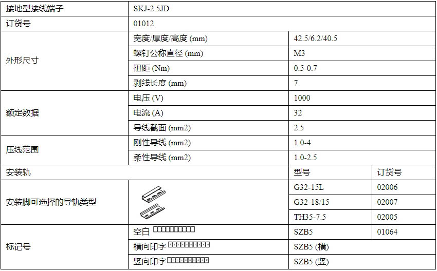 SKJ-1.5JD 接地型接線端子-導軌式接線端子