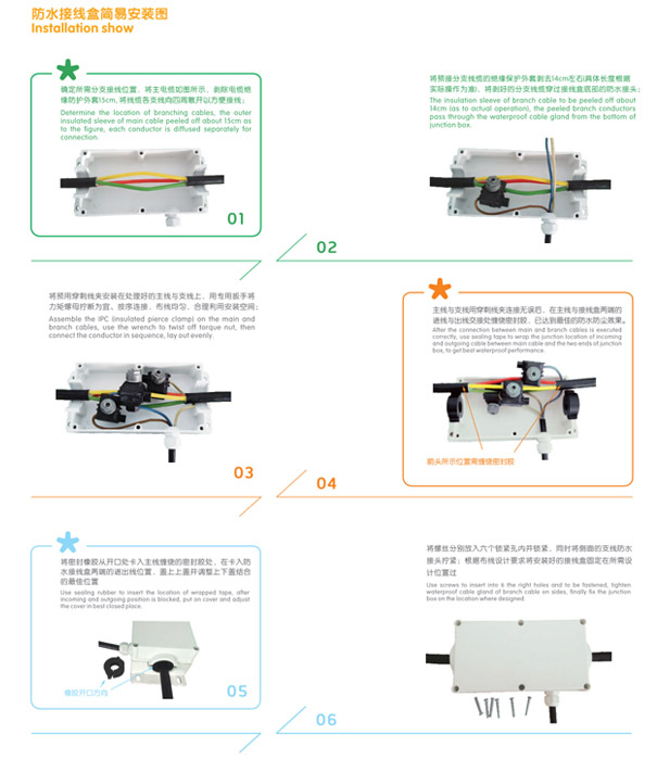 4、進出線孔:防水盒可以隨意跟據客戶的使用要求在上面開孔,(開孔位置及開孔大小都可以按照客戶指定要求加工)開孔后可以裝有配套的防水夾緊接頭,達到防水最佳效果。