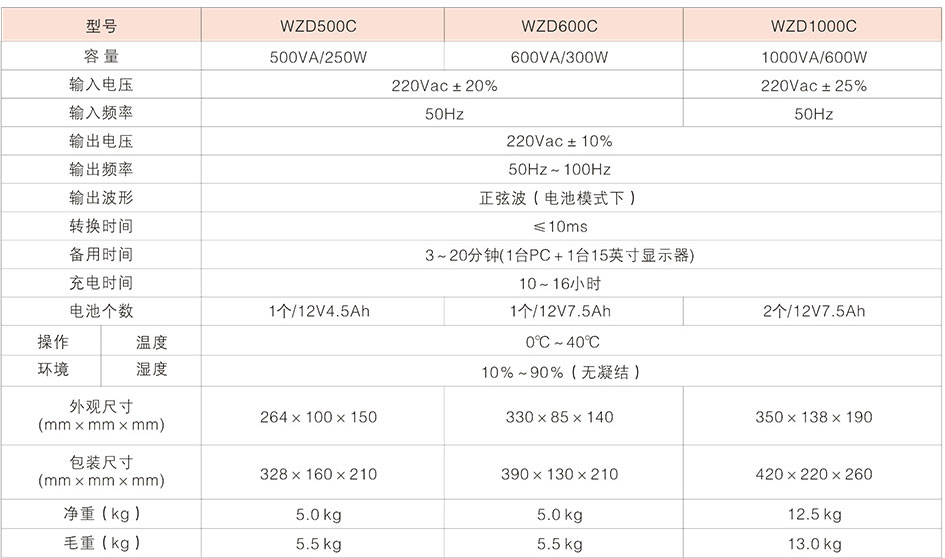 1kVA-3kVAWZD-UPS不間斷電源主要技術參數