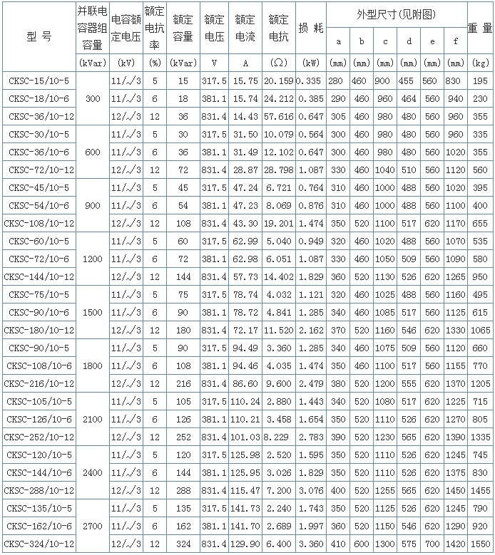 4、CKSC 樹脂絕緣干式鐵芯串聯電抗器系列技術參數表:絕緣水平LI75AC35kV