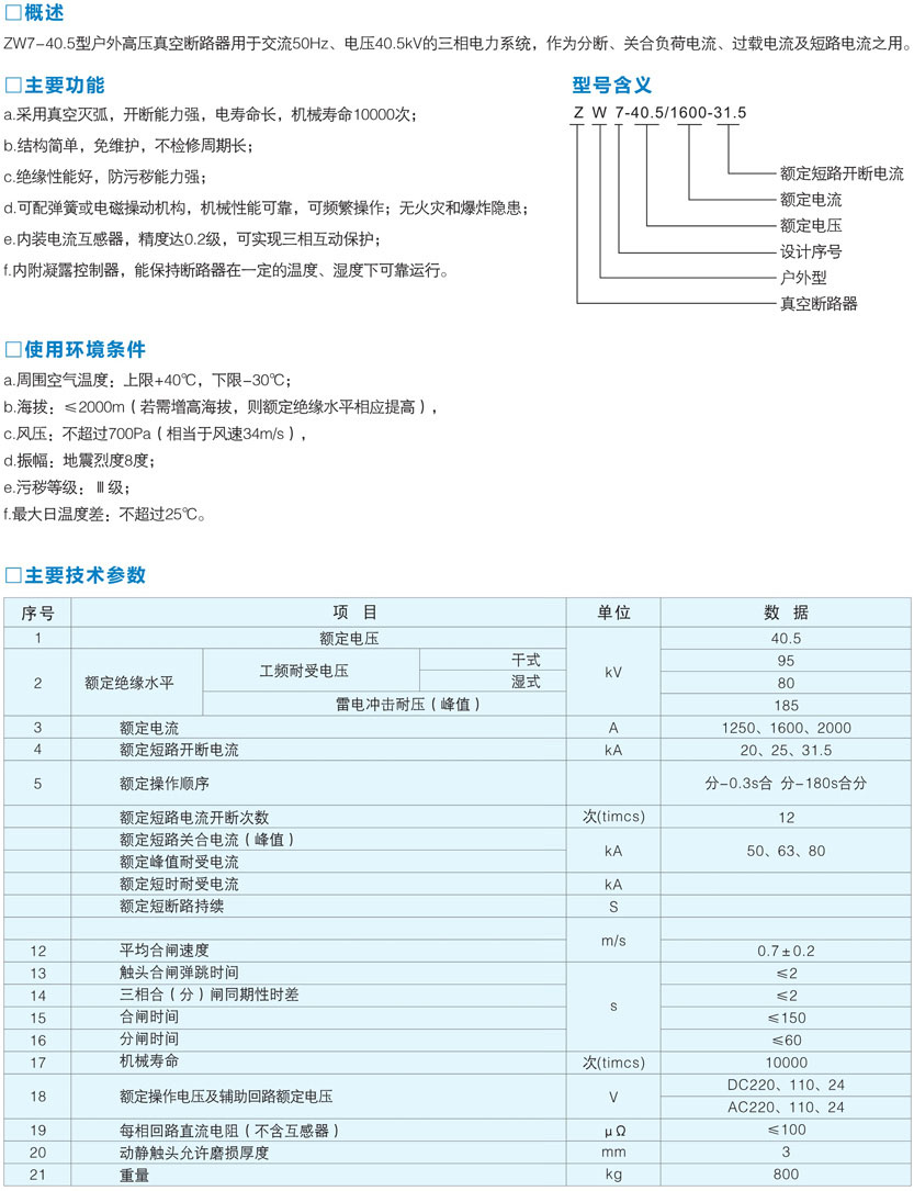 ZW7-40.5戶外高壓真空斷路器-高壓開關原件