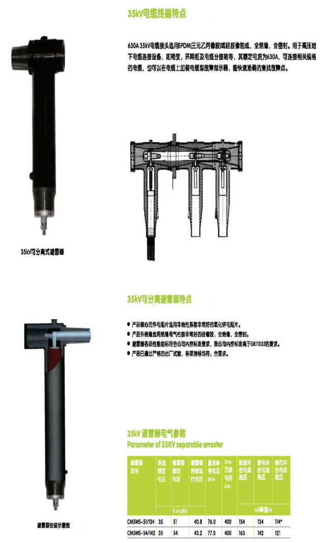 35kV可分離式避雷器-冷縮熱縮電纜附件