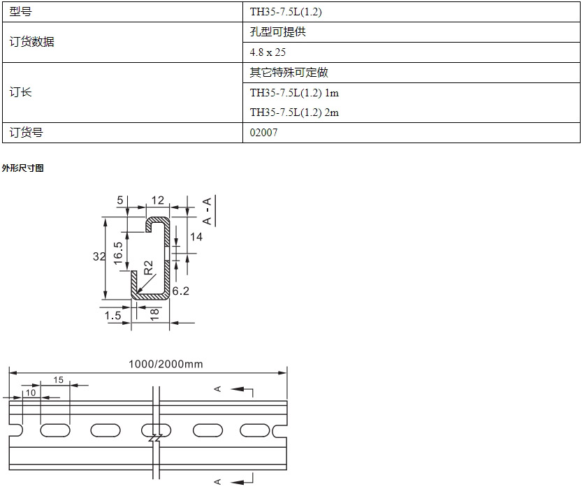 TH35-7.5L(1.2)電氣安裝軌系列-導軌式接線端子