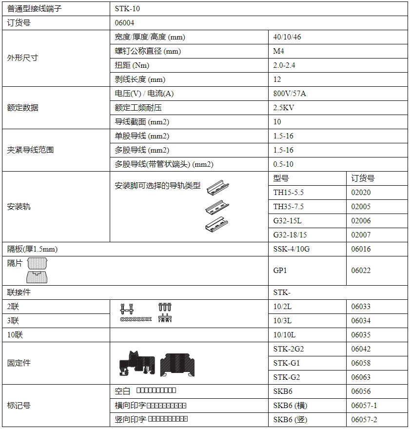 STK-10 框式螺釘壓接端子排-導軌式接線端子