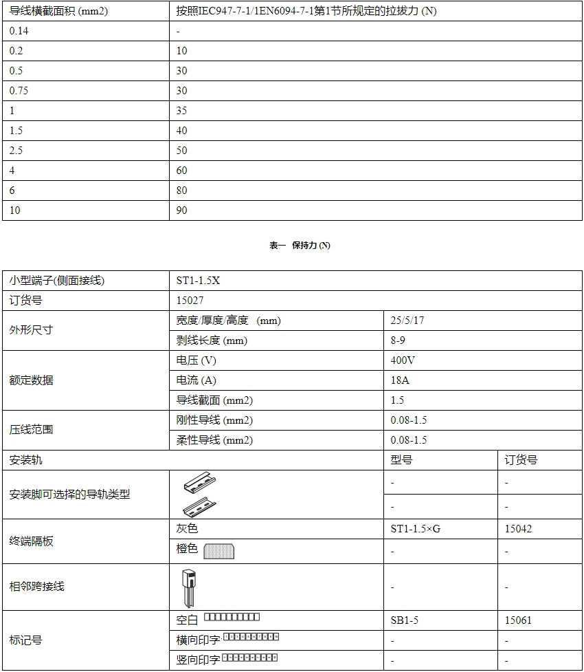 ST1-1.5X 籠式彈簧接線端子-導軌式接線端子