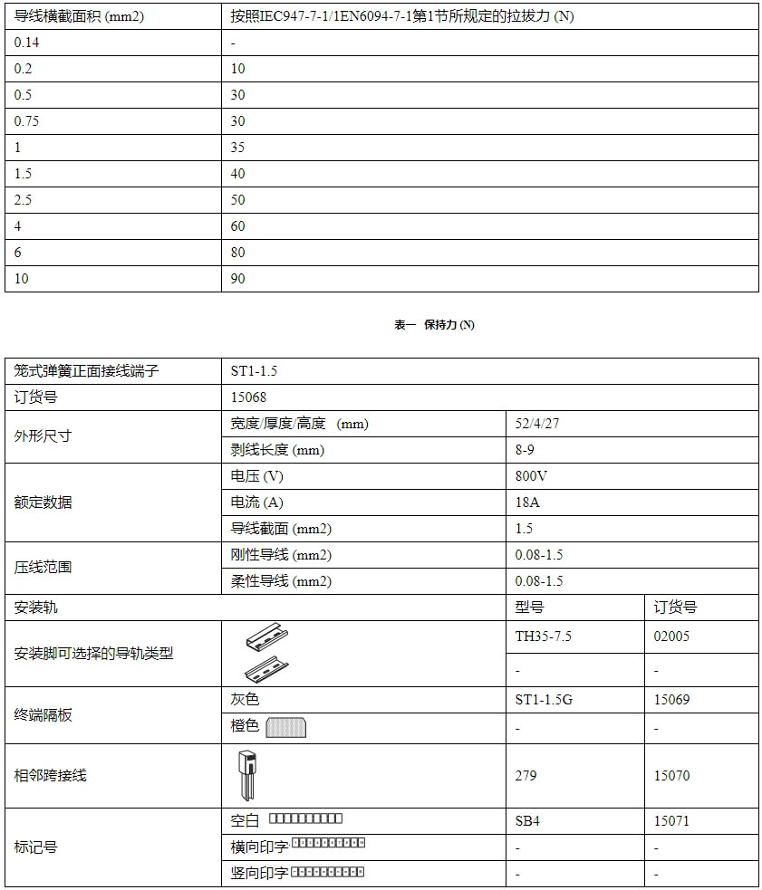 ST1-1.5 籠式彈簧接線端子-導軌式接線端子